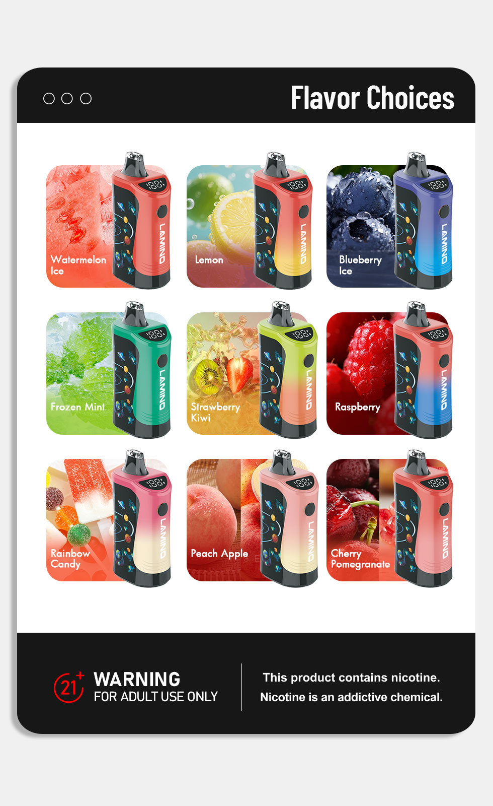 这些产品并非没有风险。含有尼古丁,未成年人不得出售或使用